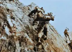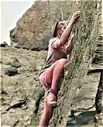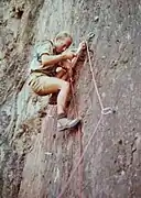 « La roche était friable et nous devions dégager quelques kilos de roche pour planter un piton. Le matériel de l'époque n'était pas forcément adapté, les coinceurs n'existaient pas, la plupart des mousquetons étaient en acier, les rangers n'étaient pas forcément adaptées à l'escalade. Au départ il y avait un dièdre sur la droite ensuite nous bifurquions sur la gauche pour terminer sur un petit plateau pour pouvoir ensuite redescendre en rappel. Le but était de pouvoir faire passer le commando entier pour l'entraînement. Par la suite nous avons servi d'instructeurs et de conseillers pour les légionnaires et je pense que c'est la raison pour laquelle, ils ont utilisé cette paroi comme centre d'entraînement et en faire un parcours[4]. »