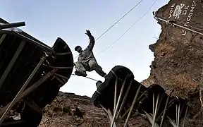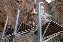 La voie de l'Inconscient s'étend sur 265 mètres, comprenant 10 obstacles accrochés à flanc de falaise dont certains sont à plus de 70 mètres du sol[11], parmi lesquels 3 tiroliennes[12]. Fait de câbles d'acier et de plateformes en béton ces obstacles ont aujourd'hui une réputation internationale[13].