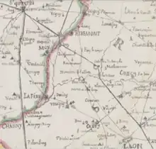 - poursuit et se superpose à la chaussée de la D1044, traverse Corbeny,