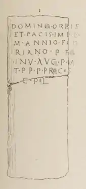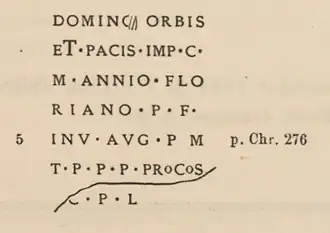 Elle est un des rares milliaires à porter une dédicace de l'an 276 à l’empereur Florien, qui essaya de s'imposer par la force mais dont le règne ne dura que quelques mois. Émile Espérandieu trouve d'ailleurs, à son sujet, « choquant » « l'emphatique qualification de maître de l'univers et de la paix » (Domino orbis et pacis).