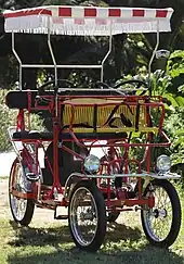 À présent, des véhicules à pédales pour adultes sont toujours fabriqués, pour le transport des personnes, une utilisation de loisirs ou à l’occasion de festivités.