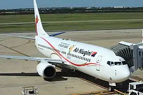 L'avion impliqué était un Boeing 737-8BK, immatriculé P2-PXE, exploité par Air Niugini, la compagnie aérienne nationale de la Papouasie-Nouvelle-Guinée. Bien qu'en bon état après l'impact, l'avion fut retiré du service[4].