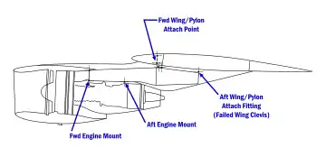 Lors du décollage du vol 191, les forces aérodynamiques furent suffisantes pour arracher complètement le pylône de l'aile dû à la fatigue. La perte du moteur, combinée à la position relevée des becs sustentateurs, ne pouvait qu'entraîner un désastre.
