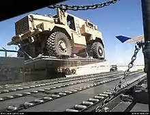 Photo prise le jour de l'accident, montrant un des MRAP chargé à bord du vol 102 à Camp Bastion.
