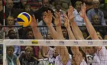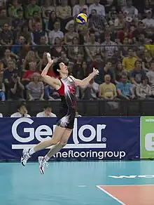 Le volley-ball, ou volleyball[1], est un sport collectif opposant deux équipes de six joueurs[2], de 4 joueurs ou de 2 joueurs séparés par un filet de hauteur variable selon le niveau et la catégorie, qui s'affrontent avec un ballon sur un terrain rectangulaire de 18 m de long sur 9 m de large.