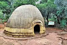 Au portail, les sagaies représentent le pouvoir de Dingane[11].