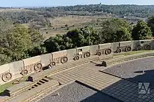 Un cercle de 64 chars à bœufs protège symboliquement le monument[11]. Il s'agit du même nombre de chariots que ceux du laager (technique défensive consistant à ranger les chariots en cercle) formé par les boers lors de la bataille de Blood River.