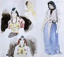 À son retour, il réalise sa célèbre toile : Femmes d'Alger dans leur appartement qu'il présente au Salon l'année suivante. Le voyage que Delacroix a effectué en Afrique du Nord de fin janvier à est primordial pour sa technique et son esthétique. Il en rapporte sept carnets constituant le journal de son voyage, dont il ne reste plus que quatre dont trois sont conservés au musée du Louvre et un au musée Condé de Chantilly) et quelque 800 feuilles[48]. Ils permettent de suivre pas à pas le périple africain du peintre. Il a peint en tout plus de quatre-vingts peintures[48] sur des thèmes « orientaux », notamment Les Femmes d'Alger dans leur appartement (1834, musée du Louvre), La Noce juive au Maroc (1841, musée du Louvre), dont Delacroix a écrit la description pittoresque dans le texte Mariage juif dans le Maroc[18], Le Sultan du Maroc (1845, musée des Augustins de Toulouse).