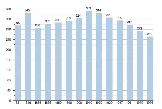- Sources : INS, Rem. : 1831 jusqu'en 1970 = recensements, 1976 = nombre d'habitants au 31 décembre[2].