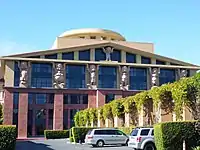 Conçu par l'architecte italien Aldo Rossi décédé en 1997, il évoque un gratte-ciel new-yorkais et rappelle l'architecture de Kem Weber pour l'Animation Building[57]. L'édifice a coûté 95 millions d'USD et propose 397 000 pieds carrés (36 883 m2) pour 1 200 employés[58],[59]. Ouvert en 1999, il évoque un ensemble de trois tours[57] :