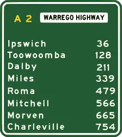 La Warrego Highway est un axe routier situé dans le sud du Queensland, en Australie. Elle relie la zone côtière à la région centrale du sud de l'État et est longue d'environ 750 kilomètres. Elle tire son nom du fleuve Warrego, qui passe à proximité de son extrémité. L'ensemble de la Warrego Highway fait partie de la route nationale reliant Darwin à Brisbane. Ancienne "route nationale 54", elle est devenue la "route nationale A2" lorsque le Queensland a commencé à passer la dénomination de son réseau routier au système alphanumérique.