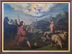 Un jour, près du sanctuaire de la Sainte Tunique confié par sainte Hélène à l'évêque Agrice de Trèves (en), il rencontre une vocation plus pastorale à travers un propriétaire terrien qui lui fait remarquer qu' « un garçon jeune et fort ne doit pas mendier pour son pain, mais le travailler ». Marqué par cette parole, il le suit et devient l'un de ses employés, s'occupant d'abord des cochons puis d'autres animaux. Assez vite, les troupeaux se mettent à prospérer. Quelques cultures lui sont confiées, avant de se faire berger.