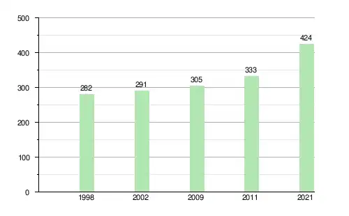 En 2021, le village de Wenecja comptait 424 habitants, en augmentation de 50,35 % par rapport à 1998[6]. En 2021, 57,1 % des habitants du village de Wenecja étaient en âge de travailler (entre 18 et 64 ans pour les hommes et 18 et 59 ans pour les femmes). 25,7 % des habitants avaient moins de 18 ans et 17,2 % avaient l'âge légal de la retraite. Les personnes en âge de travailler représentaient 59,5 % de la population de la voïvodie de Couïavie-Poméranie et 59,5 % de la population de Pologne. Ainsi, le taux de dépendance démographique du village de Wenecja est supérieur à celui de la voïvodie de Couïavie-Poméranie et supérieur à celui de la Pologne[7].