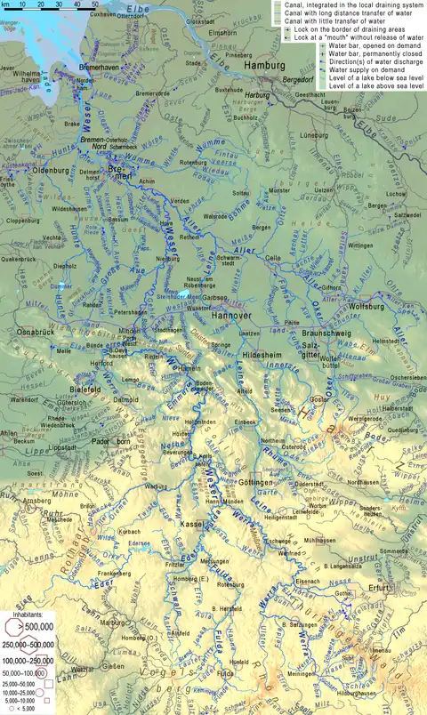 La Weser est, avec l'Ems, le seul fleuve dont le cours se trouve entièrement sur le territoire allemand.