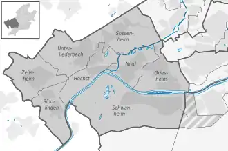 L'arrondissement (en rouge) au sein de la ville de Francfort-sur-le-Main