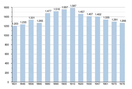 - Sources : INS, Rem. : 1831 jusqu'en 1970 = recensements, 1976 = nombre d'habitants au 31 décembre[2].