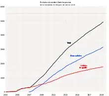 À la fin 2009, Wikipédia contenait déjà 28,5 millions d'articles, auxquels il convenait d'ajouter les documents de la médiathèque Wikimedia Commons, contenant 56 millions de fichiers. Ces documents étaient chaque mois consultés par 346 millions de visiteurs uniques[52]. Le dessin en 3D ci-dessous illustre cette volumétrie.