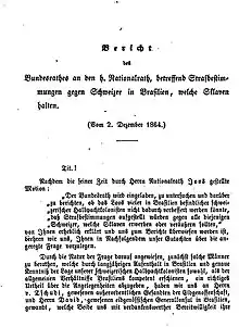 - (de) « Bericht des Bundesraths an den h. Nationalrath, betreffend Strafbestimmungen gegen Schweizer in Brasilien, welche Sklaven halten », sur amtsdruckschriften.bar.admin.ch, (consulté le ).