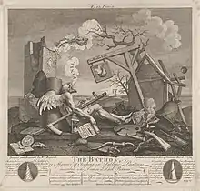 - A Rake's Progress (La Carrière d'un libertin ou d'un roué, 1733-1735), suite de huit toiles, Sir John Soane's Museum[78].
