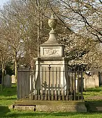 Dans la nuit du 25 au , William Hogarth, usé et dédaigneux, hautain mais ferme, est terrassé par une crise de vomissements, prélude à une rupture d'anévrisme qui l'emporte[51], après une année passée à lutter contre la maladie. Il est inhumé le dans le cimetière de l'église St Nicholas de Chiswick. Sa maison, près de la route nationale A4 Londres-Bristol, très fréquentée, est devenue un musée qui lui est consacré[45]. David Garrick composa des vers de circonstances, une épitaphe[alpha 5]. Il est mort sans descendance ; son épouse Jane (1709-1789) lui survit et durant vingt-cinq ans, gère son œuvre[59].