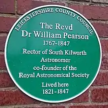 Le 16 janvier 2020, une plaque verte est dévoilée au presbytère, South Kilworth, Leicestershire [13]. William Pearson y a vécu de 1821 jusqu'à sa mort en 1847.