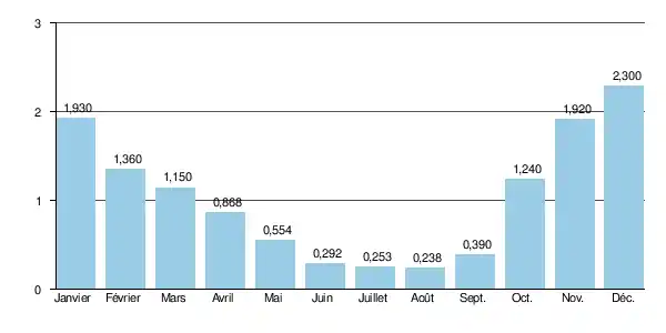 Le module du fleuve à Wimille est de 1,04 m3/s.