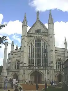 La cathédrale de Winchester, de renommée mondiale, est un des plus beaux édifices religieux anglais. L'origine de sa construction date de 1079 ; elle reste la cathédrale gothique d'Europe avec la nef la plus longue. Elle contient des éléments d'architecture s'étendant du XIe au XVIe siècle et est le lieu d'inhumation de nombreux évêques de Winchester (tels que William de Wykeham), de monarques Anglo-Saxons (tels que Ecgberht (roi du Wessex)) et de monarques ultérieurs tels que le roi Knut le Grand et Guillaume le Roux[47]. Autrefois un important centre de pèlerinage, elle abritait le sanctuaire de saint Swithun. L'ancien chemin des pèlerins vers Canterbury commence à Winchester. Le plan de l'ancien Old Minster est tracé dans la pelouse jouxtant la cathédrale. Le New Minster (le lieu de sépulture d'origine d'Alfred le Grand et d'Édouard l'Ancien[47]) se tenait autrefois à côté. La cathédrale a un chœur de filles et un chœur de garçons qui y chantent régulièrement.