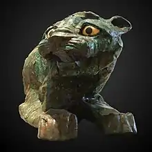 Statue du Lion de Mari. Cuivre, IIe millénaire av. J.-C. Découvert à Mari, dans le Temple des Lions.