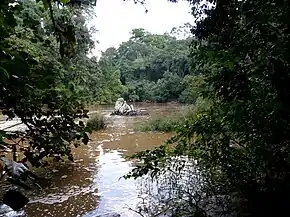 Dans sa première orientation est-nord-est → ouest-sud-ouest, elle passe au nord des monts Nandi (Nandi Hills) et de ses plantations de thé, traverse la forêt sud de Nandi (South Nandi Forest) et le sud de la forêt de Kakamega. Face au mont Usire, elle prend la direction de l'ouest-nord-ouest avant de voir ses eaux utilisées par des rizières et la pisciculture puis alimenter le marais de Yala.