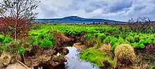 Les tourbières du Yeun Elez, situées au fond d'une cuvette granitique entourée par les hauteurs de l'Arrée forment un marais spongieux d'environ 1500 hectares où les eaux abondantes liées aux abondantes précipitations et collectées par le bassin supérieur de l'Ellez stagnent en raison de la faible pente. La tourbière est dite vivante tant que l'humidité est suffisante pour que la tourbe se forme à partir des sphaignes dont la sphaigne de la Pylaie, des chaméphytes qui s'y développent. L'empilement successif de ces végétaux en décomposition provoque un exhaussement naturel de la tourbière qui devient progressivement morte : la bruyère callune est la principale plante qui s'y développe alors formant une prairie maigre et pauvre, modifiée par l'intervention de l'homme et des animaux[28]. Par le drainage (création de profonds fossés pour accélérer le processus naturel d'évolution de la tourbière et gagner des terres agricoles exploitables), par les incendies périodiques (souvent provoqués par l'homme et qui ravagent surtout la périphérie du marais, car ils sont naturellement arrêtés par l'humidité dans la partie centrale), par l'exploitation de la tourbe et enfin en raison de l'ennoiement à partir de 1936 d'une partie du marais sous les eaux du réservoir de Saint-Michel (un tiers des tourbières est ennoyé), l'homme a considérablement modifié le milieu naturel, surtout au cours du XXe siècle.