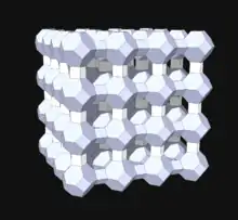 • Une cage de sodalite est notée par la formule [4668] : elle est formée par six « 4-anneaux » et huit « 6-anneaux »[3]. Ici la cage est un polyèdre.