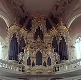 I | 5 | Totalement détruit en 1943 weitgehend ; Jadis attribué à Hildebrandt, en fait construit par Silbermann ; restauré et aujourd'hui au Musée des instruments de musique de l'université de Leipzig[2] |