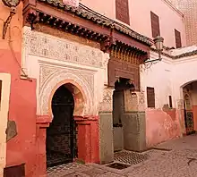 Plus tard, les premiers Saadiens, également originaires de la région de Souss, se sont associés aux partisans d'al-Jazouli pour établir leur propre pouvoir politique dans le sud du Maroc. Ainsi, quand Ahmad al-'Araj (le véritable fondateur de la dynastie saadienne) a déménagé à Marrakech en 1521, il a rapidement organisé le transfert du corps d'al-Jazouli vers la cité impériale en 1523-24 simultanément à celui de son propre père (qui avait été enterré près d'al-Jazuli en 1517)[1],[4]. Les Saadiens ont construit un complexe religieux et une mosquée autour du nouveau mausolée[5].