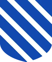 Les armes des Zen : bandées d'azur et d'argent de six pièces