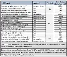 Selon une étude allemande publiée en 2015, dans les zones côtières et portuaires européenne, 50% de la pollution particulaire de l'air vient des fumées de navires, y causant 60 000 morts/an, et un coût sanitaire estimé à 58 milliards d’euros/an [7],[8]. Les populations portuaires et littorales y sont chroniquement exposées[9].
