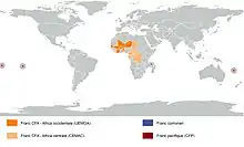 La zone franc est constituée de zones géopolitiques où sont utilisées des monnaies qui étaient autrefois liées au franc français (anciennes colonies ou territoires d'outre-mer) et sont aujourd'hui liées à l'euro par un système de parité fixe garanti par le Trésor français.