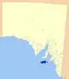 | Ville de Port Lincoln | Port Lincoln | 1921 | 30 | 481,6 | 14 531 | 14 626 | Détaché du district de Port Lincoln en 1921. Proclamée ville en 1971. | ![]() |