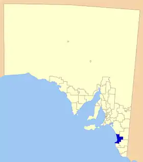 | Ville de Victor Harbor | Victor Harbor | 1975 | 385 | 39,6 | 14 525 | 15 248 | Fusion du District d'Encounter Bay et de la Municipalité de Victor Harbor en 1975. Le district a accédé au statut de Ville en 2000. | |
