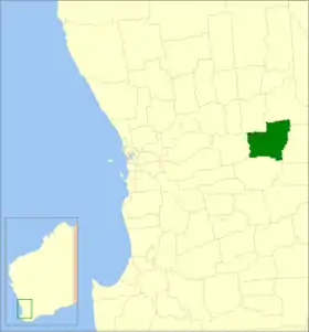 | Comté de Chittering | Bindoon | 1896 | Créé sous le nom de "Chittering Road Board" en 1896. | 1 222 km² | ![]() |