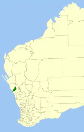 | Comté de la vallée Chapman | Nabawa | 1958 | Le "Upper Chapman Road Board" fut créé en 1901. En 1958, il devint le "Chapman Valley Road Board". | 4 007 km² | ![]() |