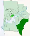 | Cité de Bayswater | Morley | 1983 | "Bayswater Road Board" (1897) devint une "Cité" le . | 32,8 km² | ![]() |