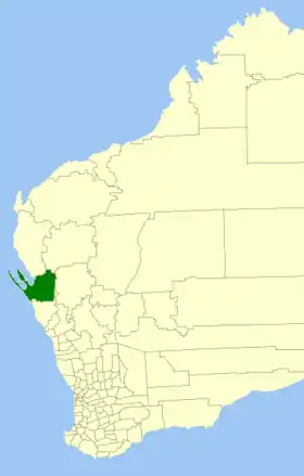 | Comté de Dandaragan | Baie Jurien | 1890 | Le "Dandaragan Road Board" fut créé en 1890. | 6 716 km² | ![]() |