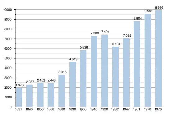 - Sources : INS, Rem. : 1831 jusqu'en 1970 = recensements, 1976 = nombre d'habitants au 31 décembre[4].