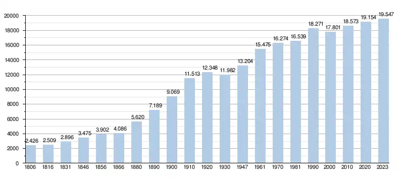 - Source : DGS - Remarque: 1806 jusqu'à 1981=recensement; depuis 1990=nombre d'habitants chaque 1er janvier[6]