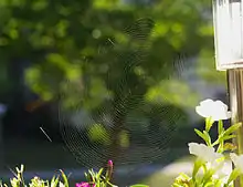 La construction de la toile ne semble pas affectée (dans la nature ou en laboratoire) par la proximité de congénères mais la taille de la toile peut être modifiée quand plusieurs femelles sont en présence[5] ; la présence de nombreuses proies semble également encourager l'araignée à reconstruire sa toile plus souvent[6].